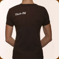These handsome tailor-cut tees are available in sizes:: S, M, L, XL and men's Choose from baby blue (pictured above) or chocolate (pictured below)