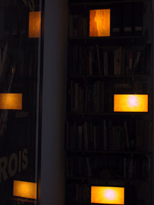 title:: staten-klement library installation (2004) dimensions:: various sizes price::sold fields of light reflected in glass