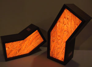title:: tilted pair (2004) dimensions:: larger lamp 17" H x 7" W x 6" D 42.5 cm x 17.5 cm x 15 cm smaller lamp 15.5" H x 7" W x 6" D 39 cm x 17.5 cm x 15 cm price:: sold both lamps are reclinable they were acquired by thomas kane